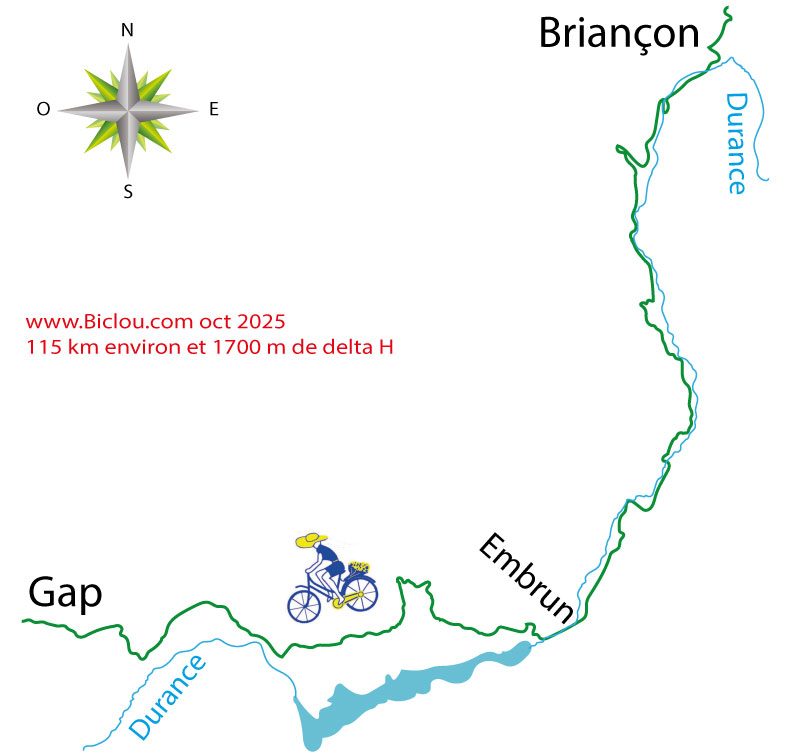 Départ de Briancon pour Gap, 110 km , sur la Vélo-route dite V-862