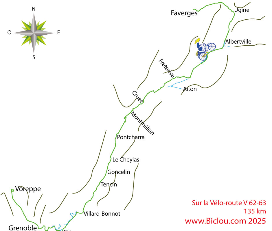 Ayant fait mimi à la fontaine Bayard,située sous le fort Rabot, C'est par la rive EST de l'Isère, que nous rejoignons Tencin et la nouvelle voie verte.